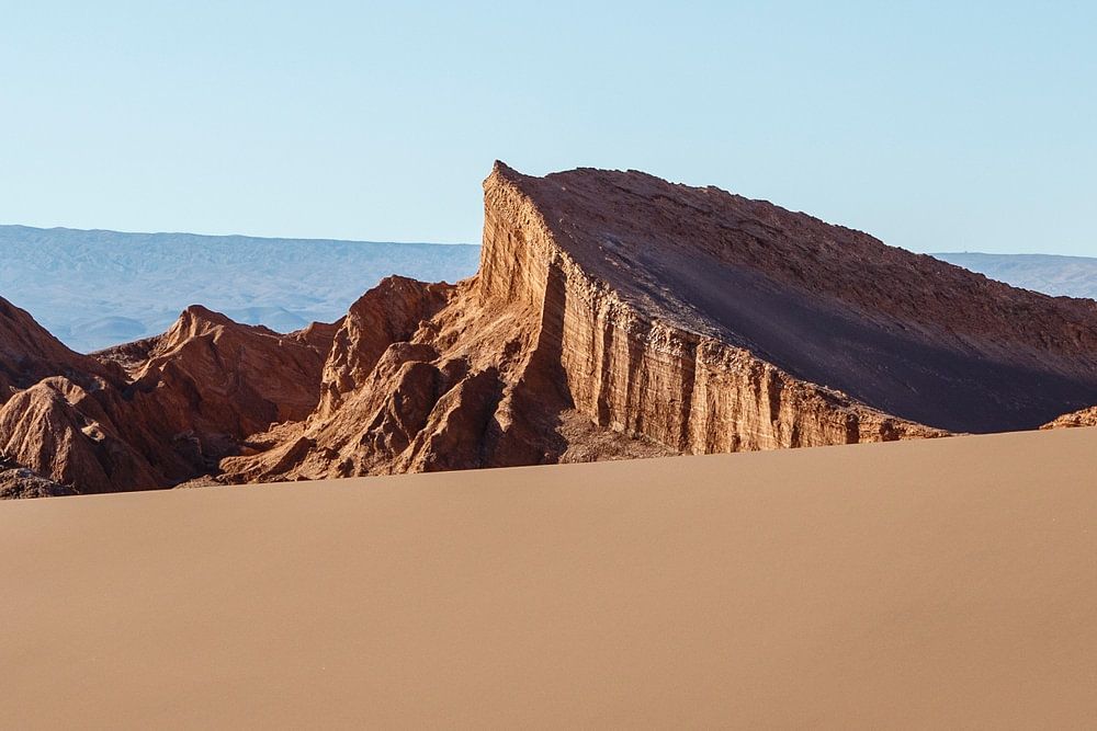 Sand- und Felslandschaft des Mondtals (Valle de la Luna) in der Atacama-Wüste im Norden Chiles, Südamerika
