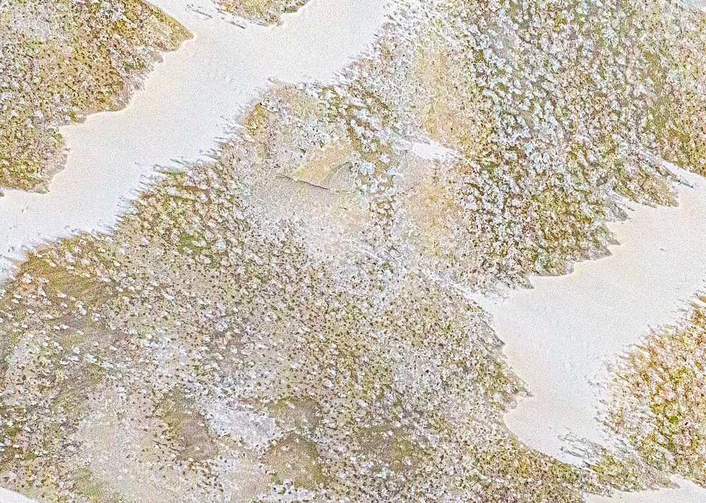 Entdecken Sie die Schönheit des Wattenmeers, eingefangen aus einer einzigartigen Perspektive. Dieses minimalistische Foto, das mit einer Drohne aufgenommen wurde, zeigt die faszinierenden Muster des Sandes entlang der Küstenlinie. Es ist eine Ode an die natürliche Pracht dieser urwüchsigen Landschaft.