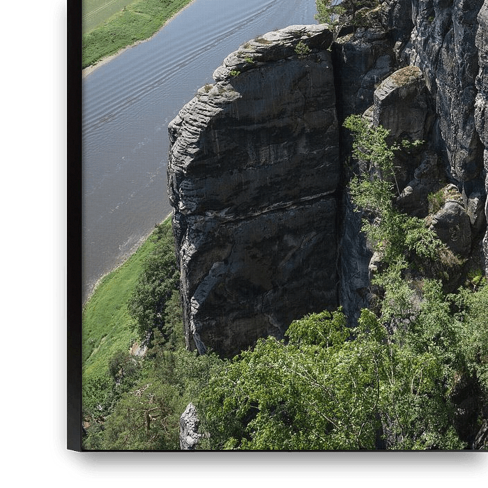 Bestelle das Foto Sandsteinfelsen und das Tal der Elbe von Adriana Müller als Reproduktion auf Leinwand, Alu-Dibond, als Poster, Fototapete oder Acrylglasbild.