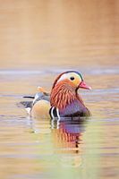 Bestelle das Foto Sanfte Eleganz – Mandarinente von Ward Denckens als Reproduktion auf Leinwand, Alu-Dibond, als Poster, Fototapete oder Acrylglasbild.
