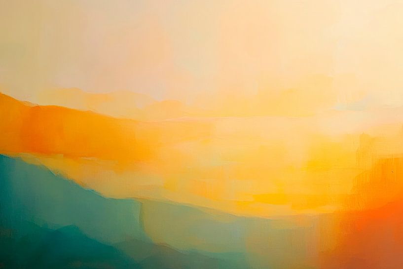 Eine sanfte Farbverlagerung, die die Wärme eines Sonnenuntergangs einfängt, zieht den Betrachter in eine beruhigende, traumhafte Landschaft. Die sanften Übergänge von Orange und Blau schaffen eine harmonische Stimmung, perfekt für ein Schlafzimmer. Hier wird Entspannung zur Kunst und lädt zum Träumen ein.
