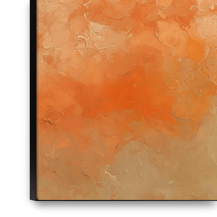 Ein abstraktes Gemälde mit weichen Übergängen zwischen Pastelltönen in Orange, Beige und Türkis. Die Struktur der Pinselstriche ist subtil und erzeugt eine leicht wolkige, träumerische Atmosphäre. Das Bild vermittelt Ruhe und Gelassenheit und lädt zum Verweilen ein.