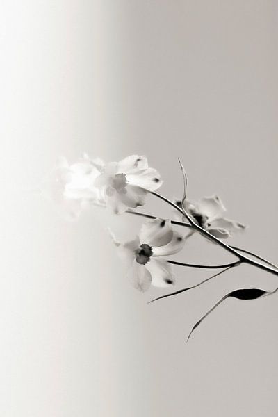 Dieses Werk fängt einen zarten Orchideenzweig in sanftem, diffusem Licht ein. Die Blüten wirken fast schwerelos und strecken sich sanft entlang eines feinen, schlichten Stiels nach außen. Das Licht mildert die Konturen und lässt Form und Raum zu einer ruhigen Komposition verschmelzen.