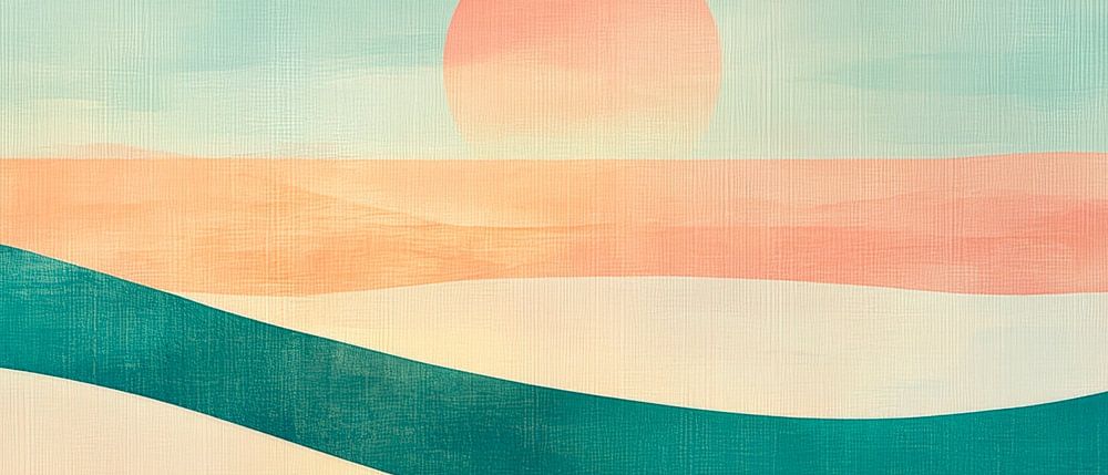 Sanfte Wellenbewegungen in beruhigenden Grüntönen umrahmen einen zarten Sonnenuntergang in Pastellnuancen. Dieses harmonische Farbspiel wirkt wie eine Einladung zur Entspannung und Frische. Ideal für Wohnzimmer oder Schlafzimmer, schafft es eine entspannte Atmosphäre, die den Alltag hinter sich lässt und den Blick in die Ferne lenkt.