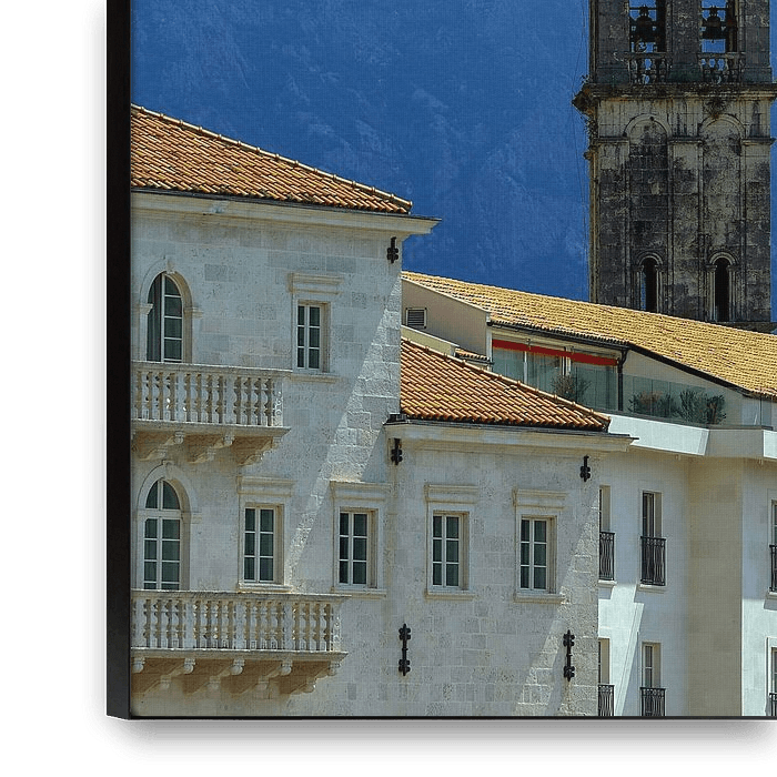 Bestelle das Foto Sankt Nikolaus Kirche Turm Perast Montenegro von Patrick Lohmüller als Reproduktion auf Leinwand, Alu-Dibond, als Poster, Fototapete oder Acrylglasbild.