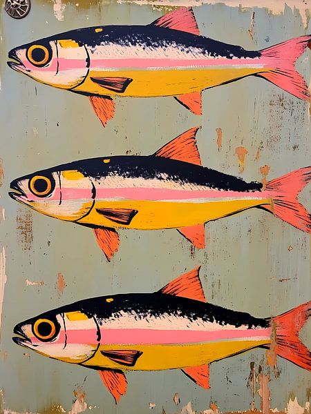 Kühne, farbenfrohe Fische verleihen Ihrem Raum eine lebendige Küstenatmosphäre mit einem modernen, künstlerischen Touch. Ideal für Strandhäuser oder als frischer, verspielter Akzent in jedem Raum.