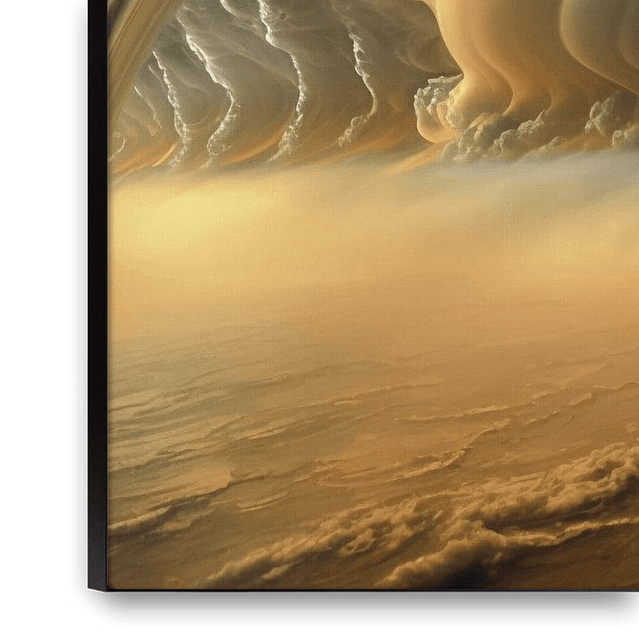 Bestelle das digitale Kunst Bild Saturn-Sturm von Vythryd Arts als Reproduktion auf Leinwand, Alu-Dibond, als Poster, Fototapete oder Acrylglasbild.