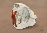 Bestelle diese Malerei Schädel eines Europäischen Bibers, Castor fiber von Helga Pohlen - ThingArt als Kunstdruck auf Leinwand, Alu-Dibond, als Poster, Fototapete oder Acrylglasbild.