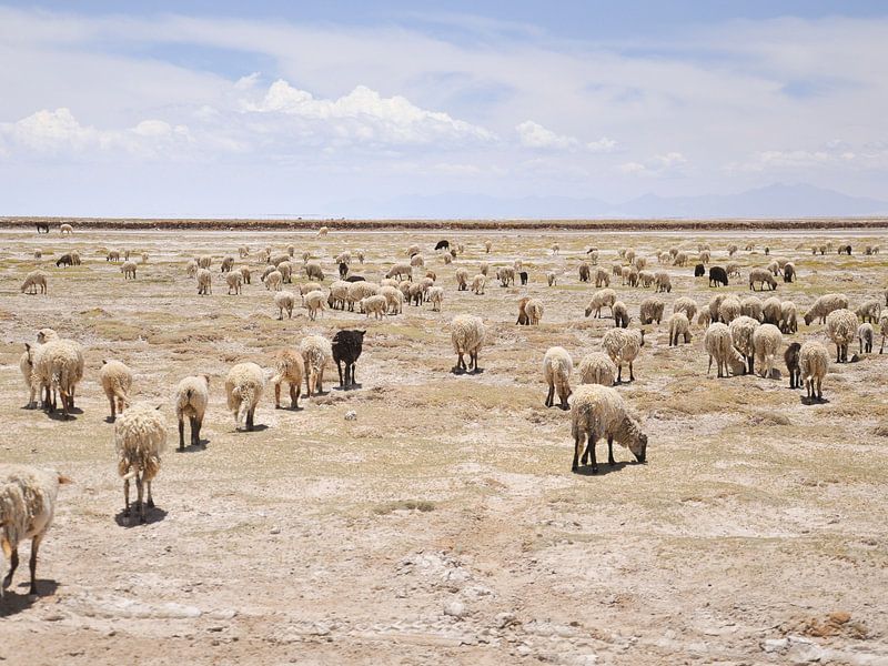 Bestelle das Foto Schafe Bolivien von Beautiful Company Studio Design (bcstudio) als Reproduktion auf Leinwand, Alu-Dibond, als Poster, Fototapete oder Acrylglasbild.