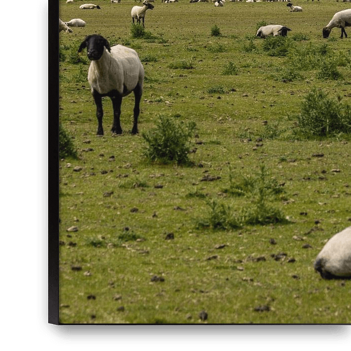 Bestelle das Foto Schafe am Mont Saint Michel von Easycopters als Reproduktion auf Leinwand, Alu-Dibond, als Poster, Fototapete oder Acrylglasbild.