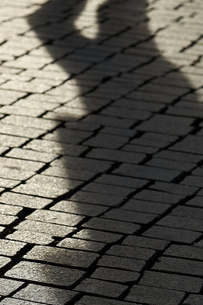 Schatten eines Fußgängers in der Innenstadt von Leipzig