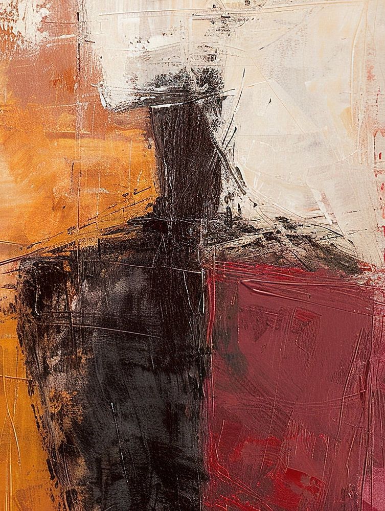 Silhouette Figure | Black Silhouette - Dieses abstrakte Gemälde zeigt die Silhouette einer Figur in Schwarz- und Erdtönen mit einem weichen Hintergrund aus hellen Flächen, die ein Gefühl von Tiefe vermitteln.