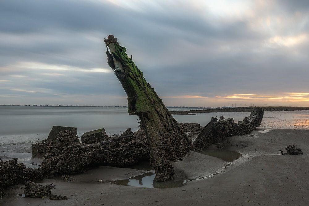 Es handelt sich um das Wrack des "Captain James A. Duffy", eines kleinen Schleppers, der von der amerikanischen #Armee eingesetzt und für Kriegsaufgaben genutzt wurde. Schönes Fotoobjekt, bei dem man nicht vergessen sollte, die Stiefel anzuziehen.