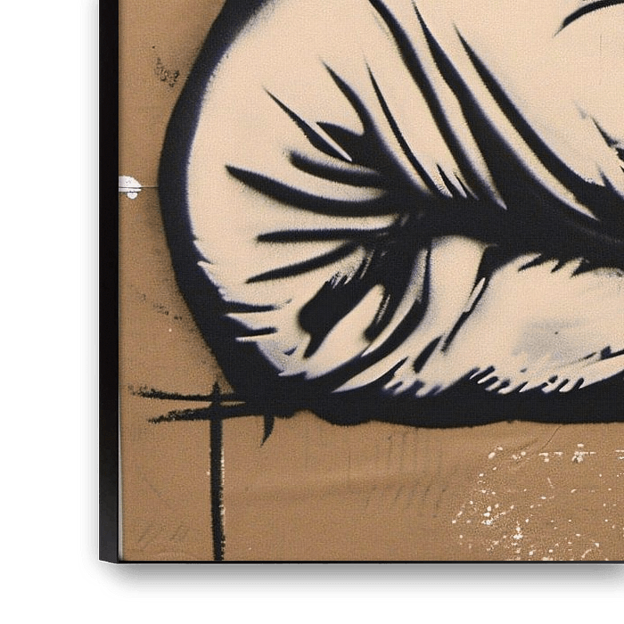 Dieses einzigartige Design zeigt eine liebenswerte Maus, die friedlich auf einer weichen Decke schläft. Das monochrome Design im erkennbaren Stil der Street Art kombiniert eine minimalistische Farbpalette mit einem kraftvollen Bild, das sowohl Ruhe als auch Verspieltheit ausstrahlt. Ideal für alle, die Kunst lieben, die ihnen ein…