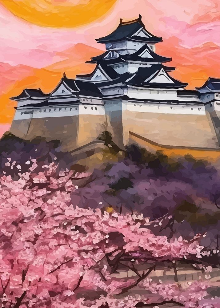 Dieses abstrakte Ölpastell haucht der von zarten Kirschblüten umrahmten Burg Himeji Leben ein. Malerische Texturen lassen die ikonische Form der Burg in traumhafte Formen übergehen, während Spritzer an schwebende Blütenblätter erinnern, die sich im Rhythmus der Frühlingsbrise bewegen. Pastellschichten schaffen eine Harmonie zwischen der architektonischen Anmut und der flüchtigen Schönheit der Natur und machen die Szene zeitlos und lebendig. Das Kunstwerk fängt die Essenz von Erneuerung und Eleganz ein und spricht all jene an, die Gelassenheit, jahreszeitliche Symbolik und den poetischen Charme der japanischen Landschaften zu schätzen wissen.