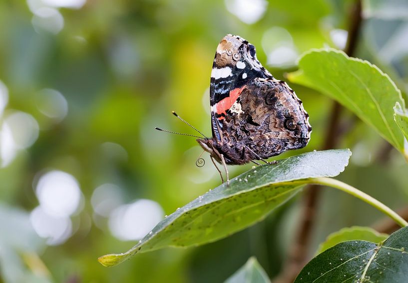 Admiral Schmetterling sitzt auf einem grünen Blatt
