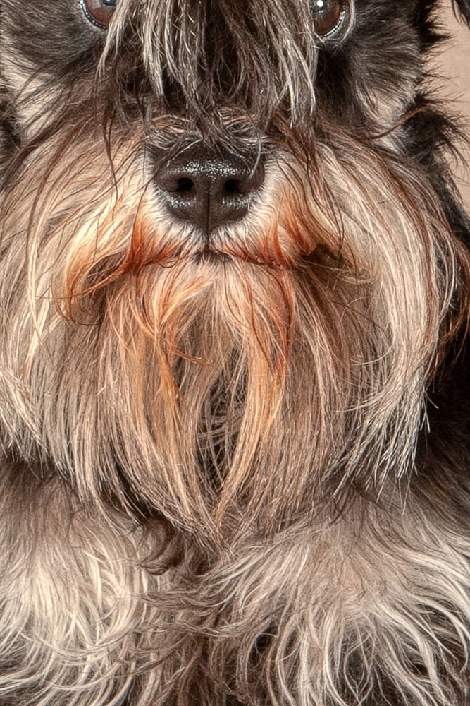 Schnauzer, grauer Hintergrund.
