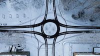 Aerial photo of a roundabout covered in snow