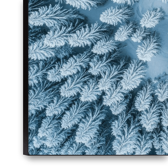 Ein winterliches Märchen entfaltet sich in sanften, kühlen Blautönen. Die schneebedeckten Tannen stehen wie stille Wächter in symmetrischer Anordnung, während der Hauch einer frostigen Stille die Luft erfüllt. Ein zartes Weiß umhüllt die Baumspitzen, und die Landschaft wirkt wie ein schlafendes Gemälde, das nur auf das erste Licht des…
