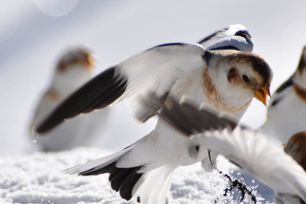 Schneeammern im Winter, Sainte-Apolline, Quebec, Kanada