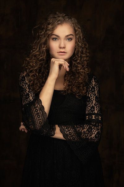 Bestelle dieses Porträt Schön in Schwarz von Anita Reynders als Reproduktion auf Leinwand, Alu-Dibond, als Poster, Fototapete oder Acrylglasbild.