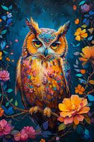 Bestelle dieses Blumen-Wandbild Schöne Eule mit Blumen von haroulita als Reproduktion auf Leinwand, Alu-Dibond, als Poster, Fototapete oder Acrylglasbild.