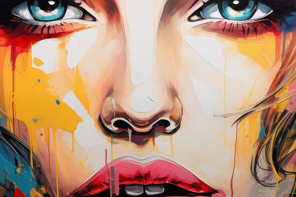 Schönes Gesicht Frau Mixed Media Pop Art Stil