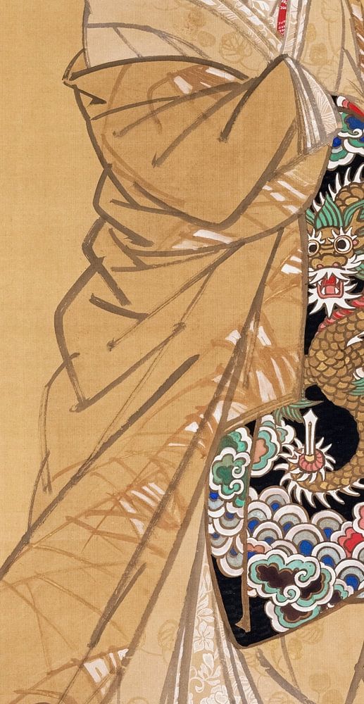 Mihata Jôryû - Beauty with Dragon Obi.Tusche und Farbe auf Seide.Kunst mit einem Twist.Kundenfoto ist willkommen.