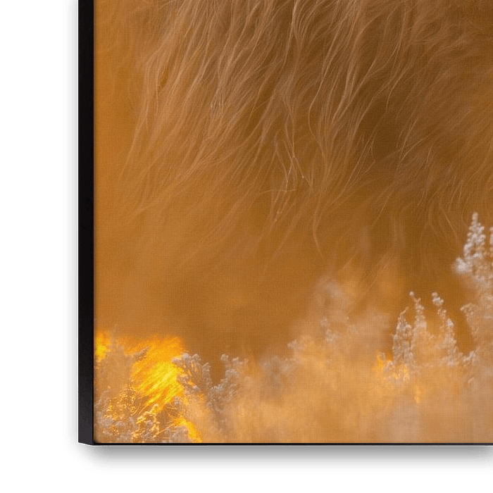 Bestelle dieses Schottische Hochlandrind Wandbild Schottische Hochlandbewohner bei kaltem Sonnenaufgang von Jeffrey Hol als Reproduktion auf Leinwand, Alu-Dibond, als Poster, Fototapete oder Acrylglasbild.