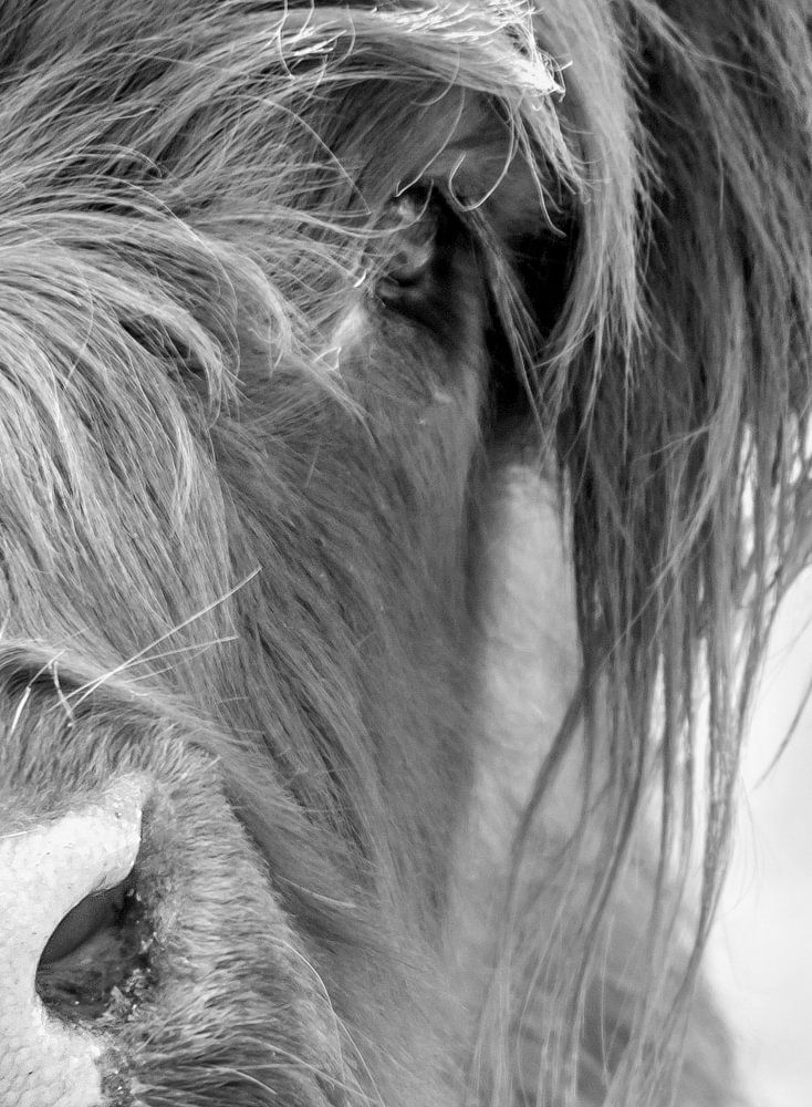 Schottischer Highlander Porträt Schwarz und weiß