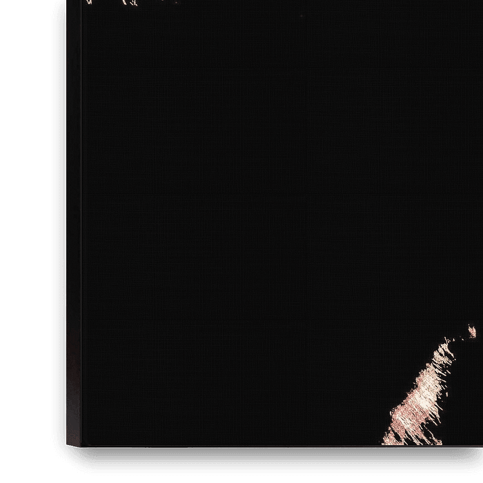 Ihre gewählte Kunst auf Leinwand, gespannt in einem Aluminiumrahmen. Schnell und einfach austauschbar für eine frische Ausstrahlung und ganz nach Ihren Wünschen.