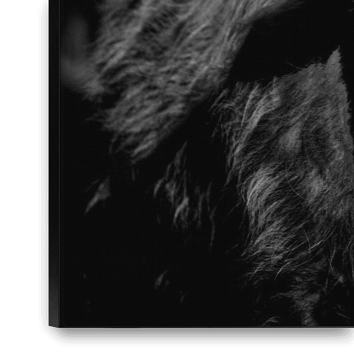 Bestelle dieses Schottische Hochlandrind Wandbild Schottischer Highlander, dunkel schwarz-weiß von Teun Ruijters als Reproduktion auf Leinwand, Alu-Dibond, als Poster, Fototapete oder Acrylglasbild.