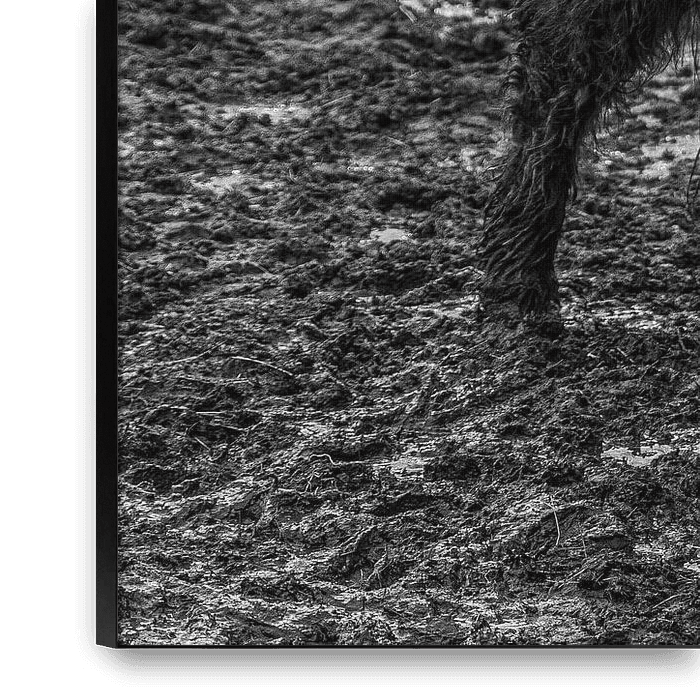 Bestelle dieses Schottische Hochlandrind Wandbild Schottischer Highlander in Schwarz und Weiß von Bart Tummers Fotografie als Reproduktion auf Leinwand, Alu-Dibond, als Poster, Fototapete oder Acrylglasbild.