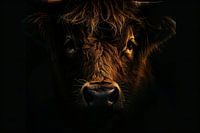 Schottischer Highlander in dunklem Licht von Art & Soul Creations