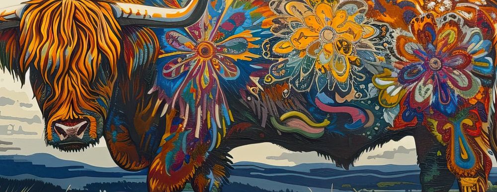 Details: Kunst,Kuh,Schottischer Hochländer,Gemälde,Tier,Schottischer Hochländer