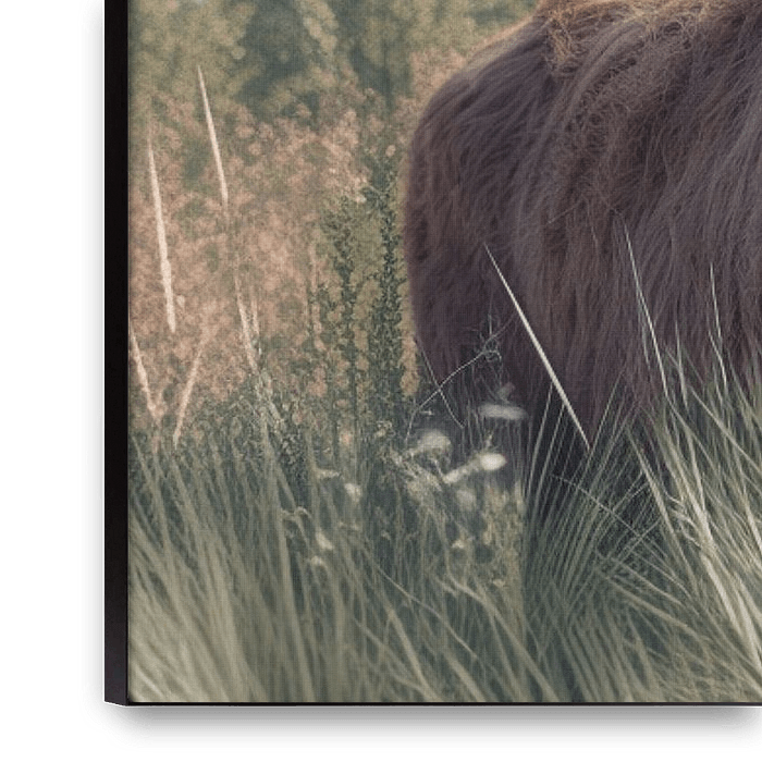 Bestelle dieses Landschafts-Wandbild Schottischer Hochländer in seinem natürlichen Lebensraum von AIstatic als Reproduktion auf Leinwand, Alu-Dibond, als Poster, Fototapete oder Acrylglasbild.