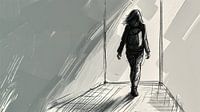 Diese künstlerische Darstellung zeigt einen Schüler, der entspannt durch einen Schulflur schlendert, den Rucksack lässig über einer Schulter getragen. Der lange Korridor ist dezent angedeutet, mit weichen Linien und sanften Farbtönen, die die vertraute Atmosphäre einer Schule vermitteln. Die Perspektive und der leichte Schwung in der…