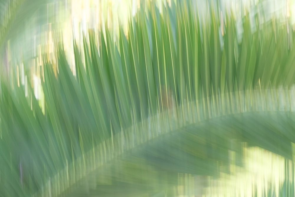 Das Sonnenlicht scheint so schön durch die Palmenwedel, dass es eine Freude ist, es zu betrachten. Ich habe die Kamera absichtlich bewegt. Wie wohltuend ist es, diese Palmen als Tapete im Zimmer zu haben.