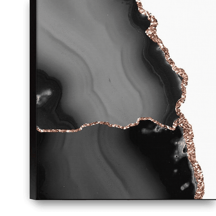Bestelle dieses moderne Wandbild Schwarz & Rose Gold Achatstruktur 07 von Aloke Design als Reproduktion auf Leinwand, Alu-Dibond, als Poster, Fototapete oder Acrylglasbild.