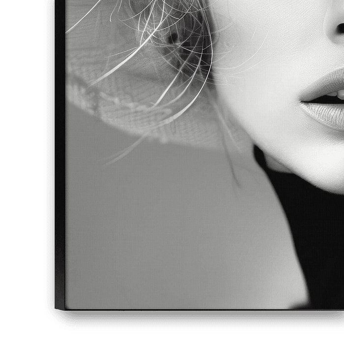 Schwarz-Weiß-Porträt, inspiriert von den 1950er Jahren, ein besonderer Blickfang für Ihr Interieur! Wählen Sie das Format und das Material für dieses Werk und machen Sie es zu Ihrem eigenen.