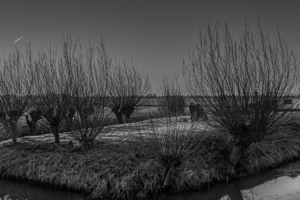 Die Sonne geht auf und beleuchtet langsam die Welt. Die ersten Strahlen fallen auf die Mühle und die Trauerweiden.