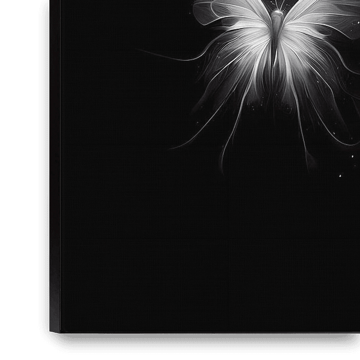 Bestelle dieses Schmetterling-Wandbild Schwarz-Weiße Göttin der Lichtschmetterlinge - Mystische Kunst von ButterflyPix als Reproduktion auf Leinwand, Alu-Dibond, als Poster, Fototapete oder Acrylglasbild.