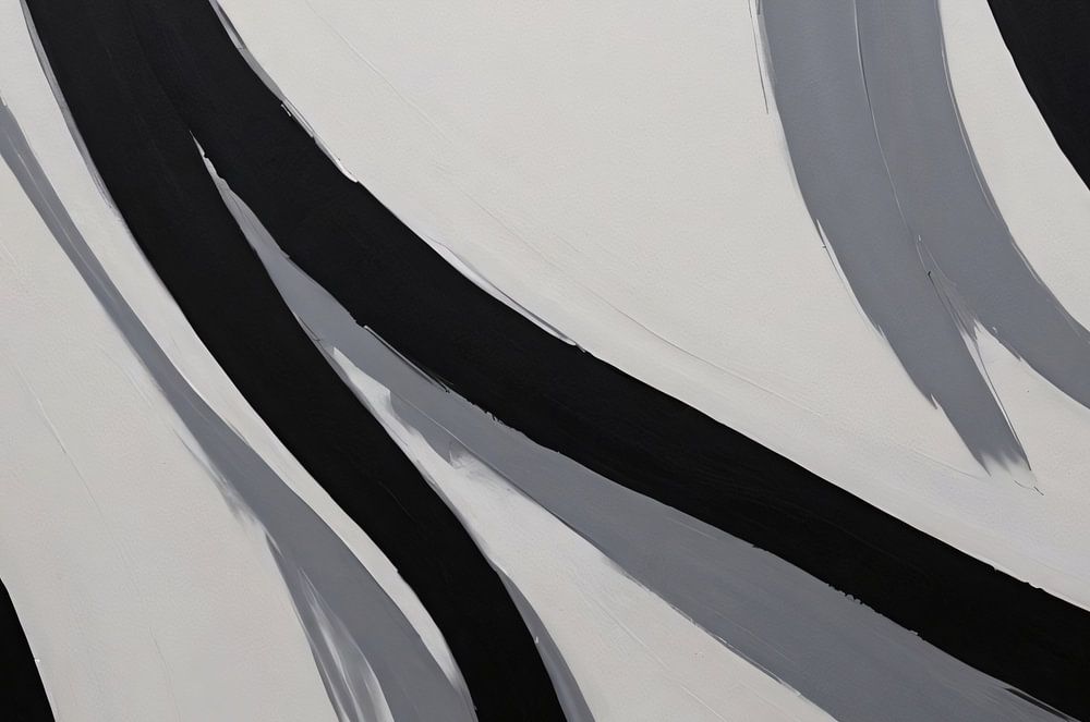 Diese verführerische Komposition mit ihren fließenden schwarzen Linien auf einer sauberen weißen Leinwand ist eine Studie über Kontrast und Form. Sie spielt mit der Wahrnehmung von Tiefe und Bewegung, was ihr eine hypnotische Präsenz verleiht. Mit seiner monochromen Farbpalette und den kühnen abstrakten Linien ist dieses Werk zeitlos und modern zugleich. Es lädt den Betrachter zu einer persönlichen Interpretation ein und verleiht jedem Raum eine ruhige Atmosphäre. Perfekt für den Minimalisten, der sowohl Form als auch Funktion schätzt, ist dieses Werk ein subtiles und doch kraftvolles Statement, das sich nahtlos in jedes moderne Interieur einfügen würde.