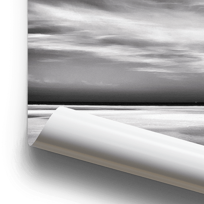 Bestelle dieses Landschafts-Wandbild Schwarz-weißer Strand von Jan Brons als Reproduktion auf Leinwand, Alu-Dibond, als Poster, Fototapete oder Acrylglasbild.