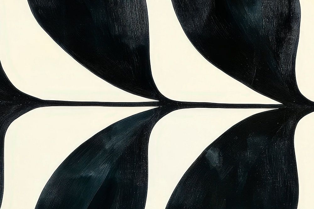 Ein harmonisches Spiel aus schwarzen Blättern, die elegant auf einem hellen Hintergrund tanzen, schafft eine ruhige, moderne Atmosphäre. Die klaren Linien und die organische Form verleihen dem Raum eine zeitlose Eleganz. Ideal für ein Wohnzimmer oder eine kreative Küche, um einen Hauch von Natur und Stil einzubringen.
