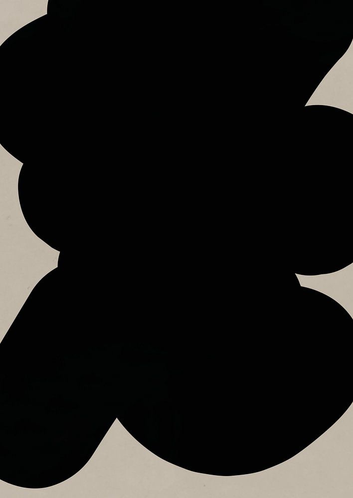 Eine schwarze Form auf einem beigen Hintergrund. Dieser abstrakte Druck im Retro-Stil hat ein subtiles Aquarell-Finish, wodurch die Farben noch weicher wirken.