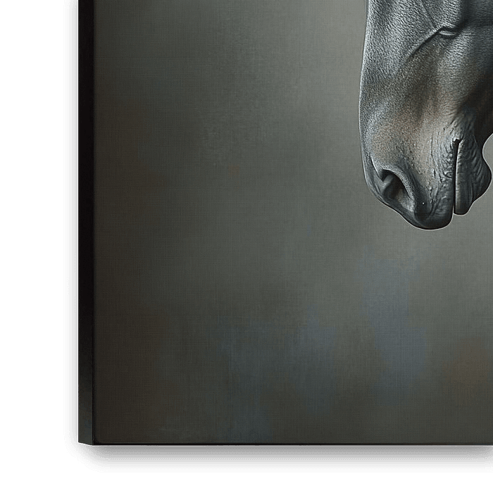 Bezaubernd, kraftvoll und unbestreitbar elegant: Dieses Porträt eines schwarzen Pferdes fängt die Essenz der Erhabenheit ein. Mit seinem glänzenden, seidigen Fell und der atemberaubend langen Mähne, die wie ein Wasserfall herabfällt, strahlt diese imposante Figur eine unvergleichliche Anmut aus. Der subtile Hintergrund in Erdtönen unterstreicht die zeitlose Klasse dieses Werks.