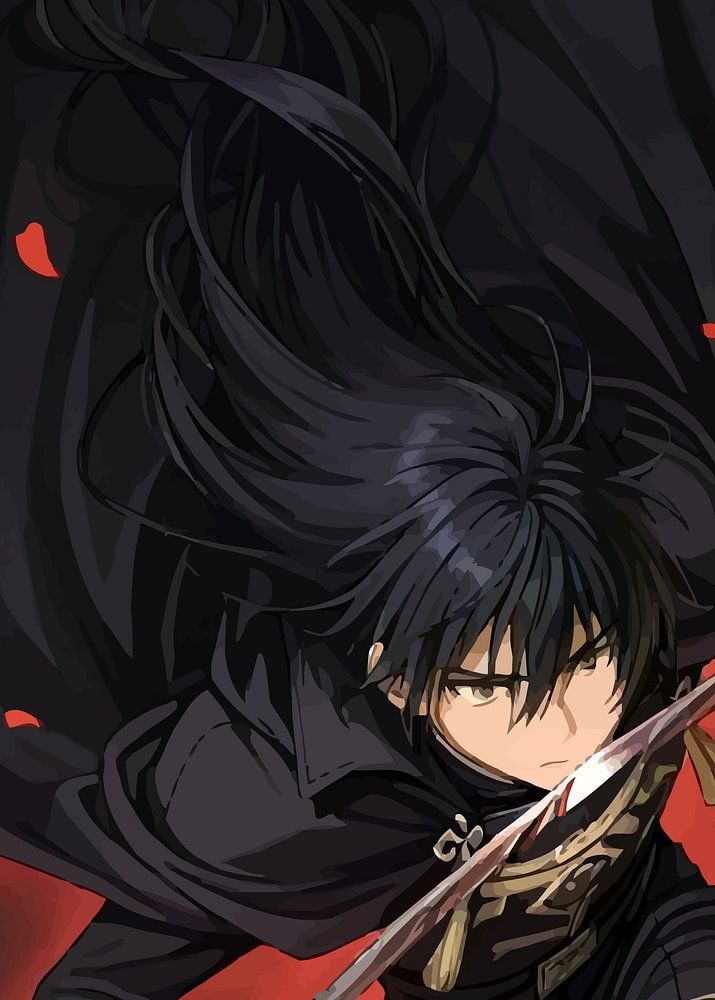 Schwarzer Ritter mit Katana in Angriffshaltung