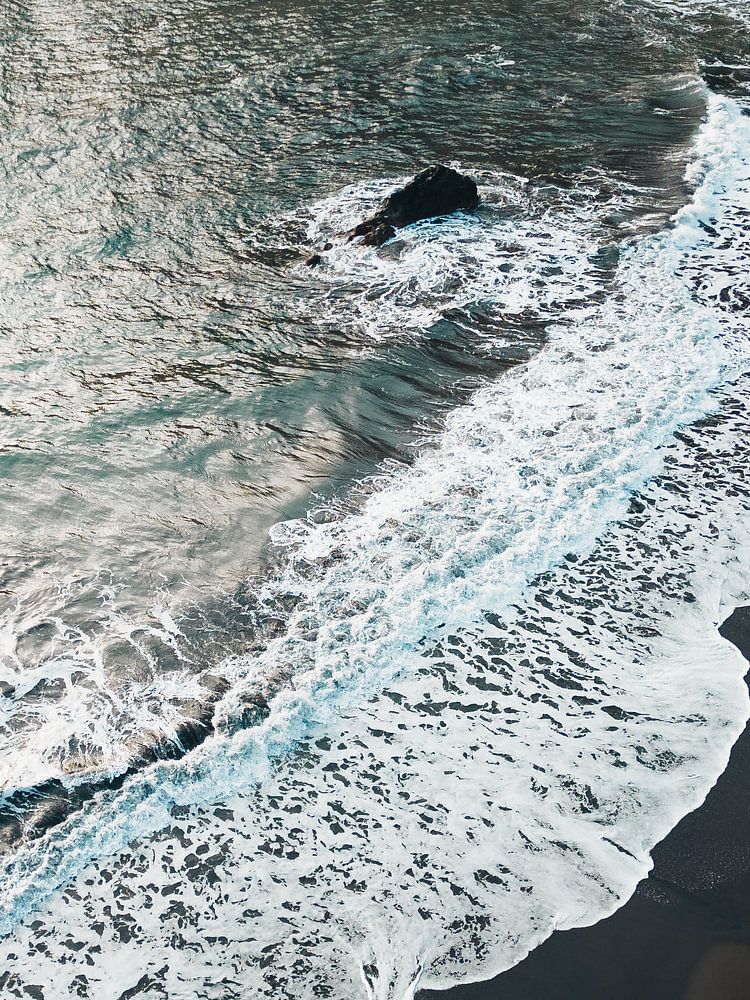 Einer der wenigen Strände, die zum Sonnenbaden geeignet sind, ist der schwarze Strand von Madeira. Von oben kommen sowohl die schwarze Farbe des Strandes als auch die blauen Farben des Wassers gut zur Geltung. Beim Fotografieren mit der Drohne machte es richtig Spaß, die verschiedenen Strukturen zu beobachten, die durch die sich zurückziehenden Wellen entstanden. Immer wieder ein neuer 'einzigartiger' Moment mit ständig wechselnden Strukturen und Linien. Ein schöner, friedlicher Ort mit dem Grün der bewachsenen Felsen im Hintergrund. Ein Muss auf der Insel Madeira.