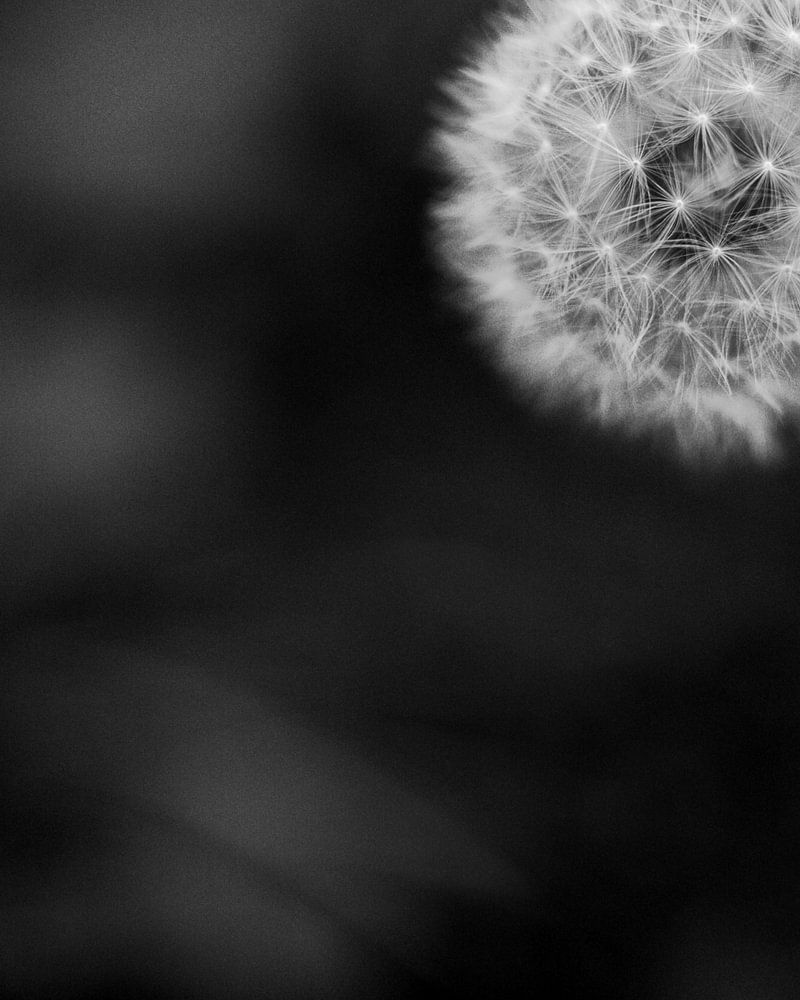 Einfaches, stark komponiertes und kontrastreiches Schwarz-Weiß-Foto eines Löwenzahns.